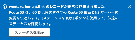 - ドメインへのインターネットトラフィックが、作成したCloudFrontディストリビューションにルーティングされるようにするために、Route53でレコードを追加する。