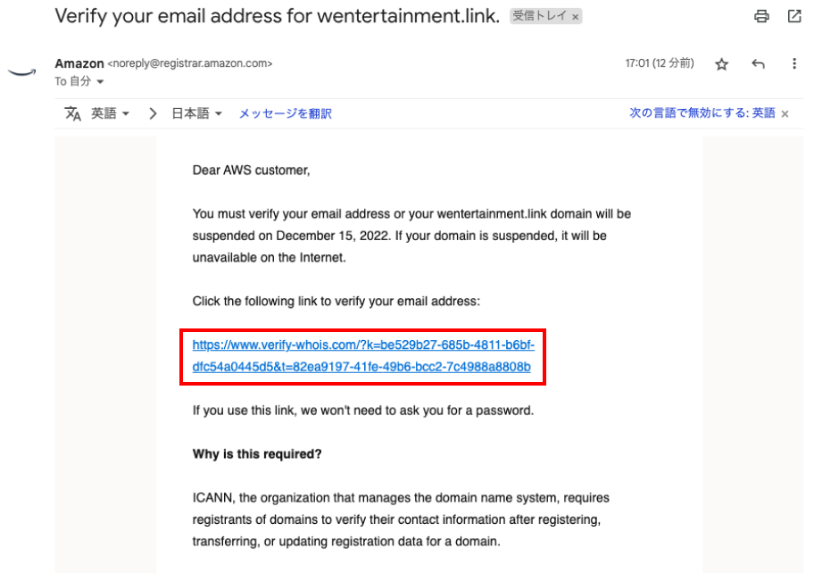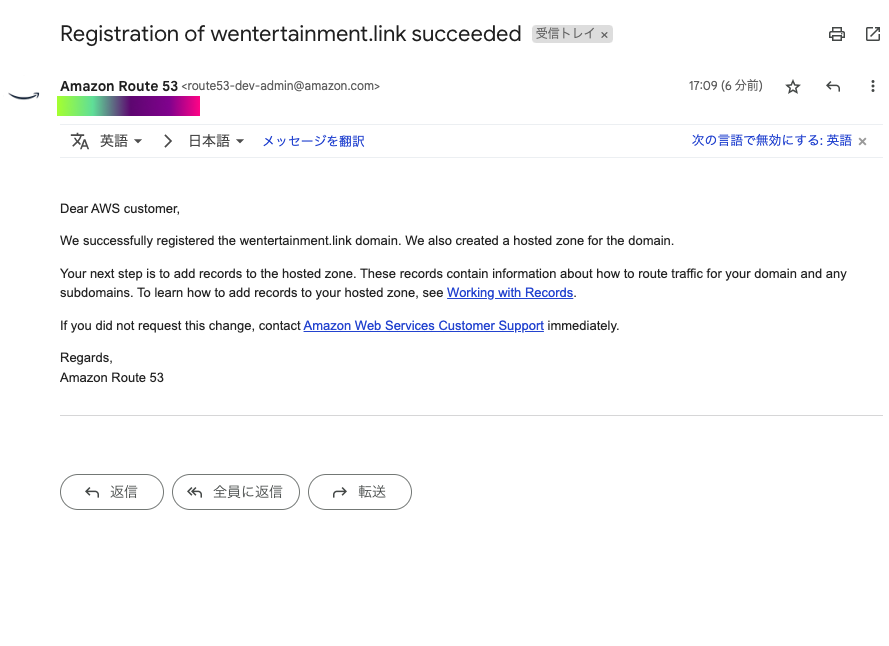 - あとはドメインの登録を待つだけ。登録が完了したら、下のメールが届く。